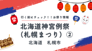 イベント 北海道神宮例祭(札幌まつり)2025 日程と見どころ、屋台情報を紹介 札幌市で行われる有名な祭りである北海道神宮例祭(札幌まつり)が、今年も6月14日(土)~6月16日(月)の3日間で開催されます。札幌市民はもちろん、県外からも多くの人達が集まる大きなお祭りです。神輿渡御や、伝統的な奉納行事が見どころで、屋台... 2025.05.12 イベント