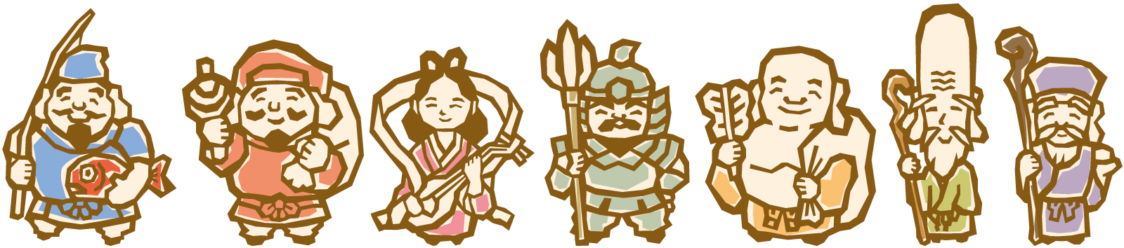 七福神とは、恵比須・大黒天・毘沙門天・弁財天・福禄寿・寿老人・布袋の7柱の神様です。