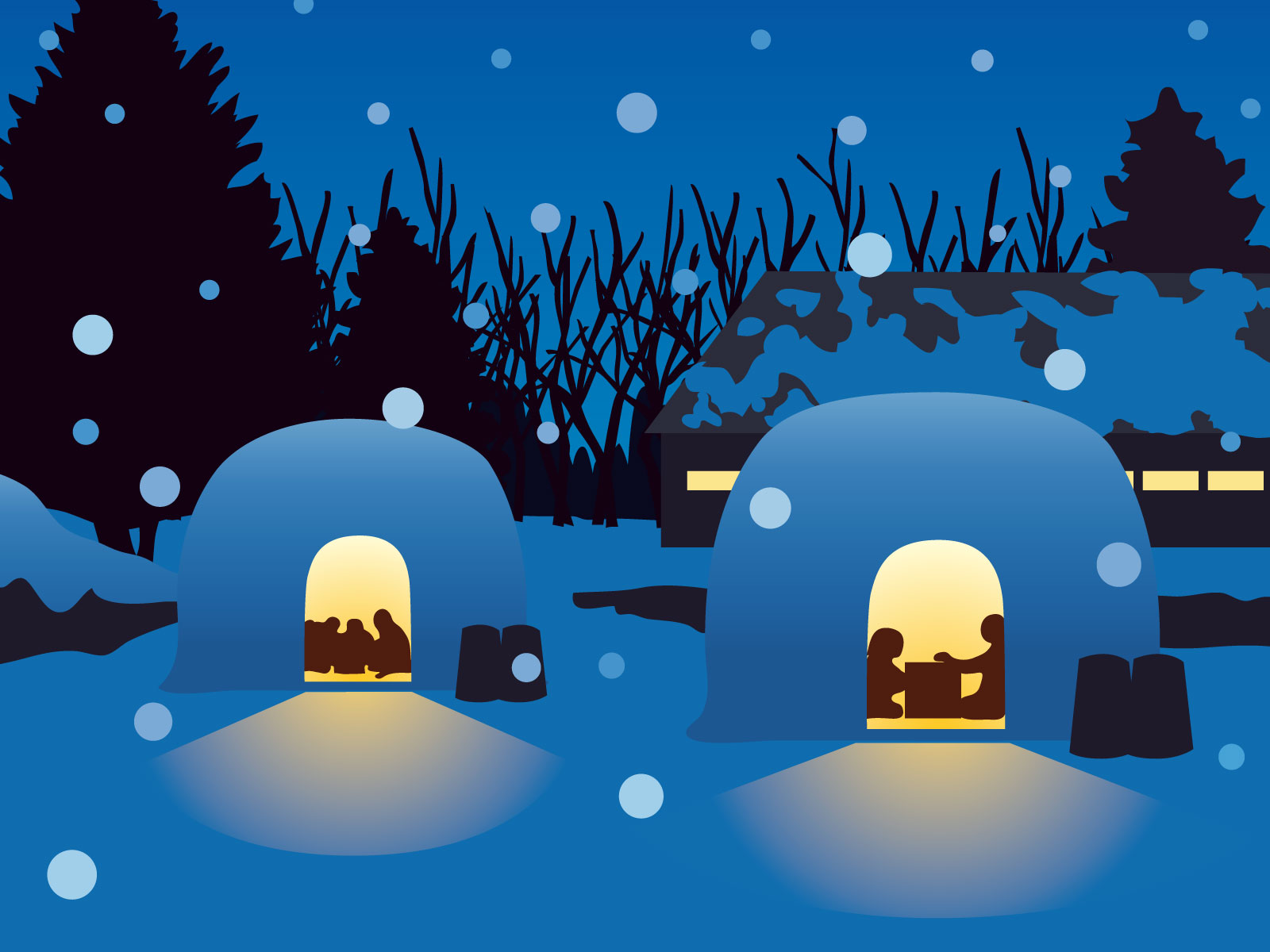 その風景は、静寂な銀世界の中に、ほのかに灯る温かい明かりが点々と。